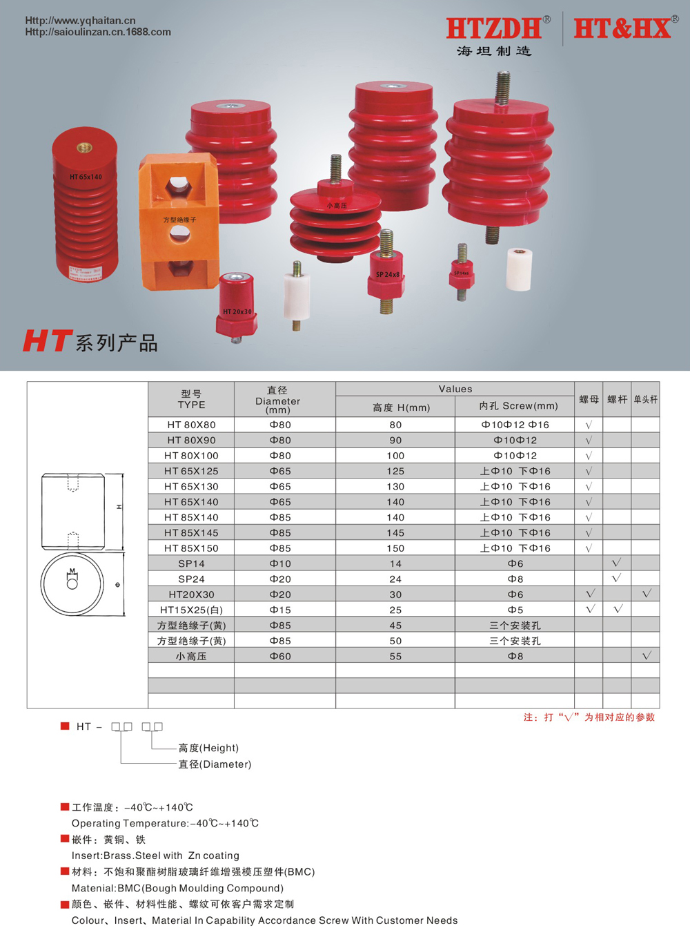 • The product name: HT, SP insulator and square insulator